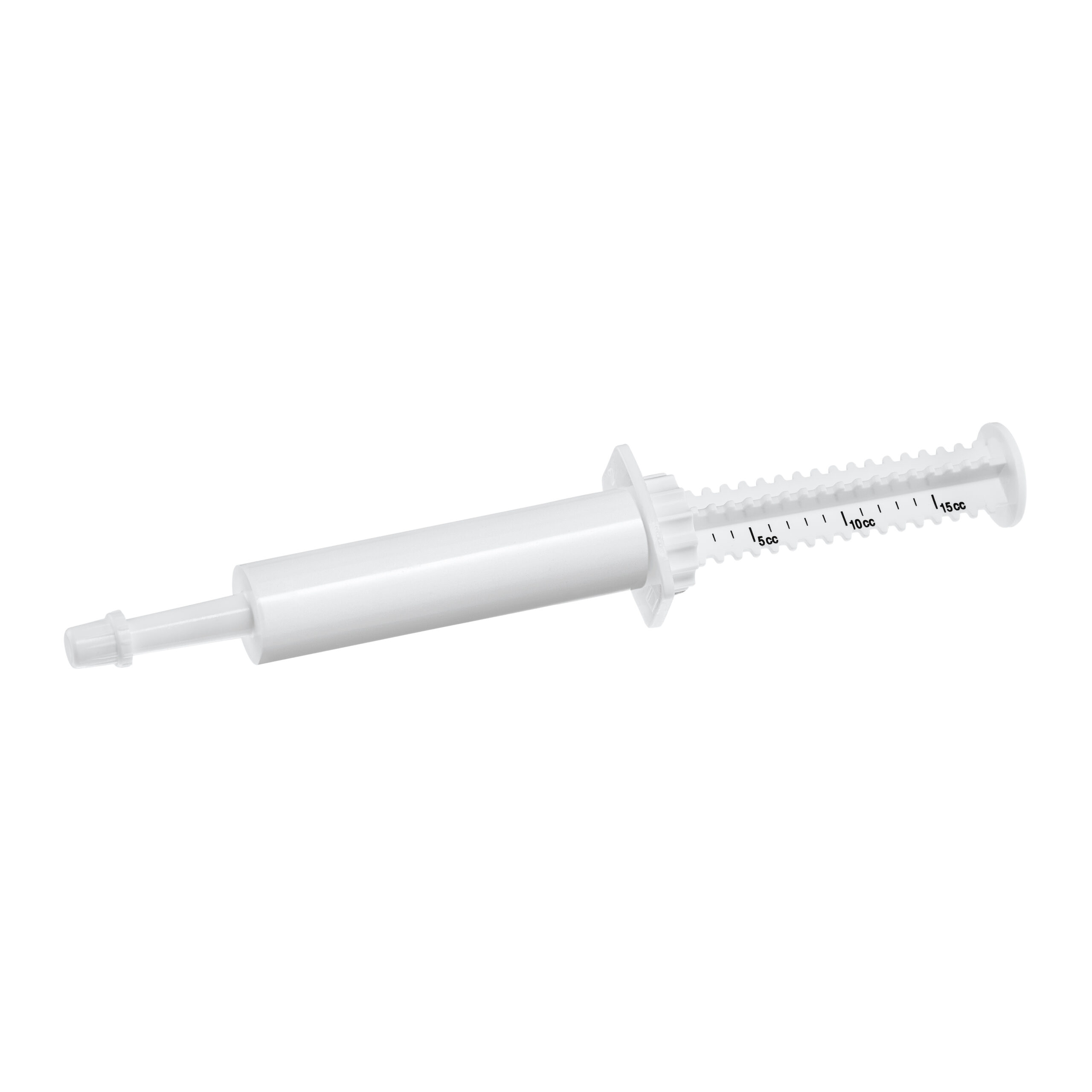 For oral dosing of pastes. Internal tip diameter of 4,5 mm. Short cap. Material: high-density PE, non-toxic, with good tightness. Closure with lock. Plunger enabling multiple dosing (with a scale and a dose regulating ring).