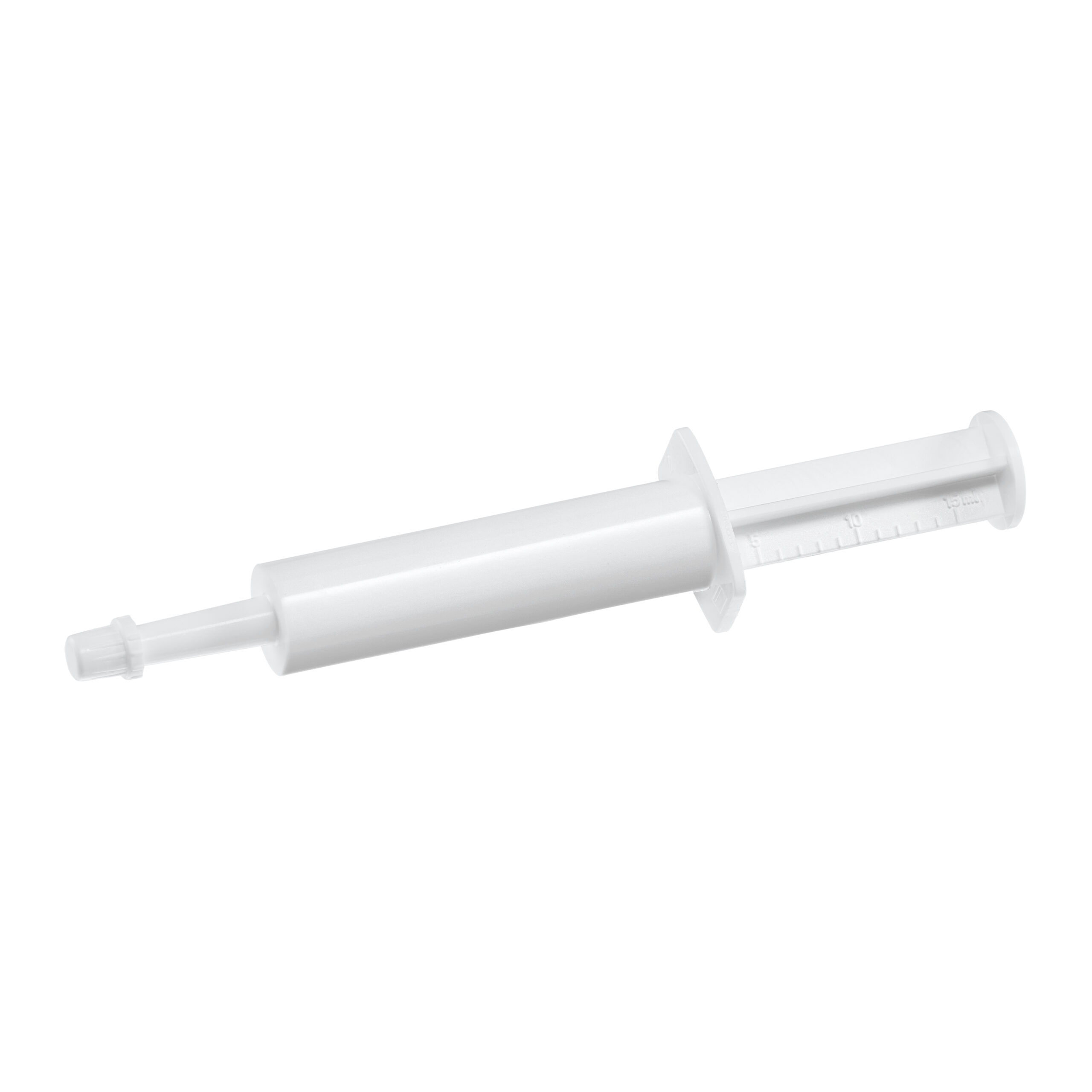 For oral dosing of pastes. Internal tip diameter of 4,5 mm. Short cap. Material: low-density PE, non-toxic, with good tightness. Closure with lock.