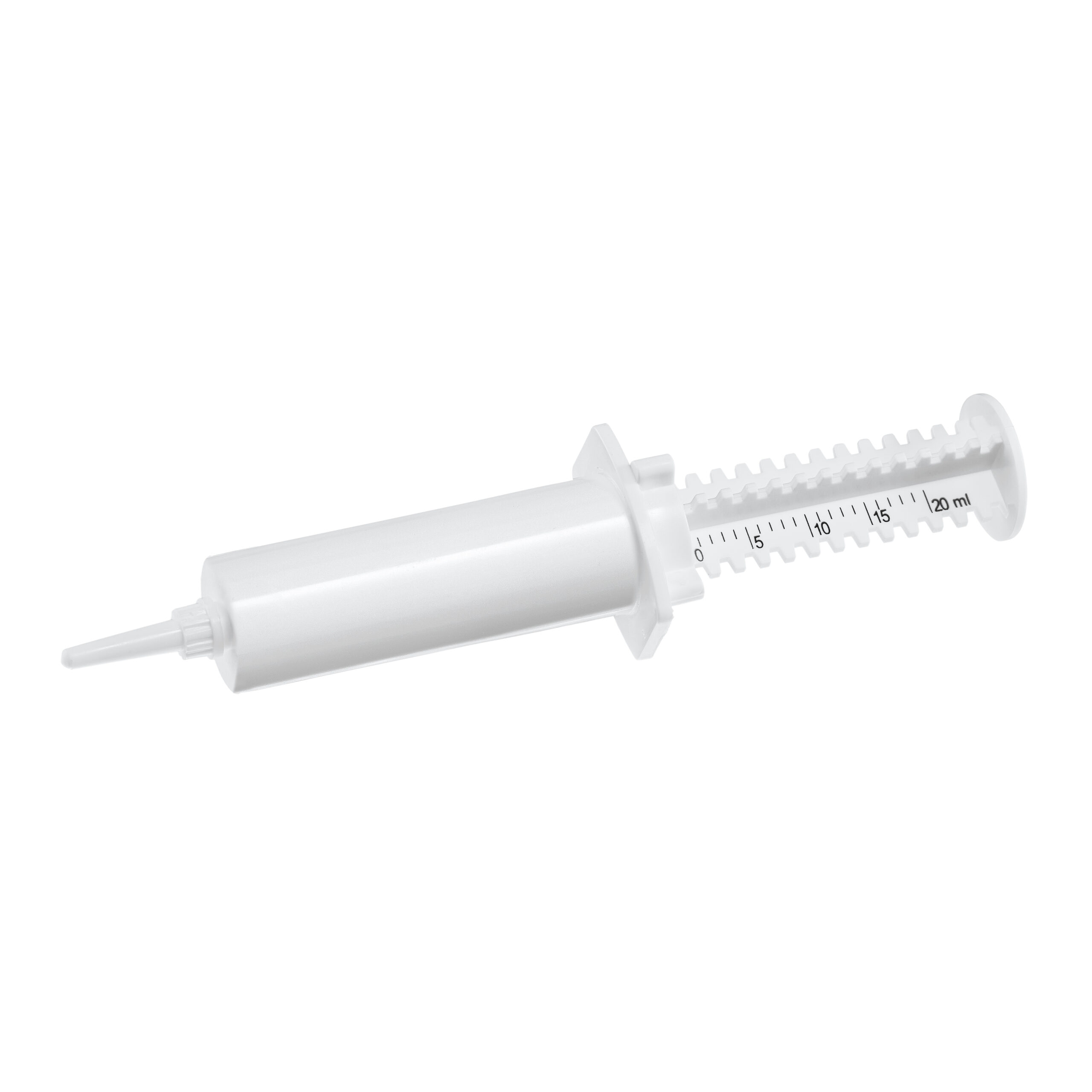 For oral dosing of pastes. Internal tip diameter of 1,6 mm. Material: low-density PE, non-toxic, with good tightness. Plunger enabling multiple dosing.