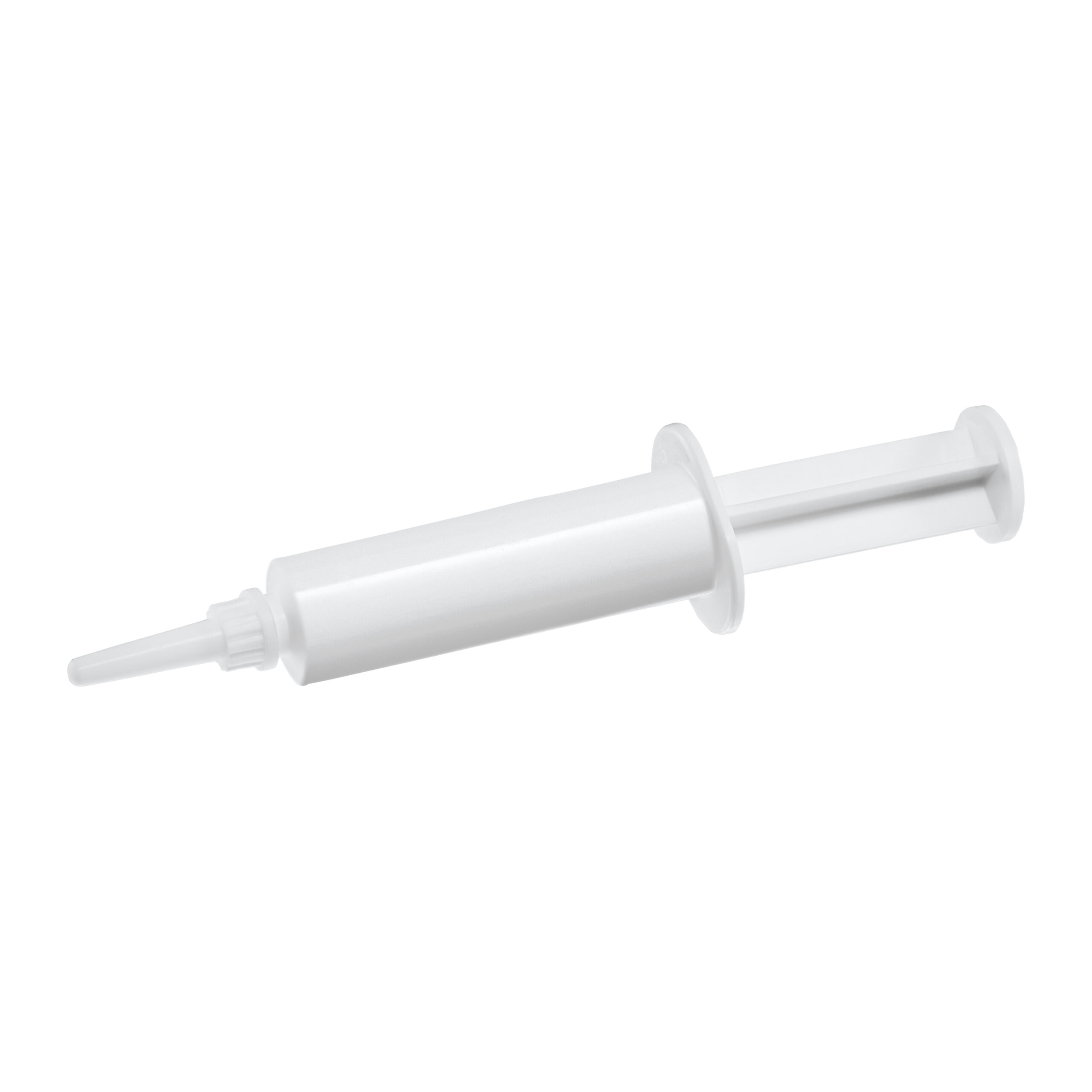Intramammary use for anti-mastitis products. Syringe is suitable for systems that require vacuum filling. Internal tip diameter of 1,6 mm. Material: low-density PE, non-toxic, with good tightness.